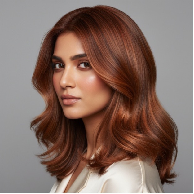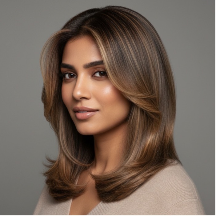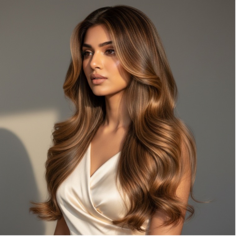 For Indian skin tones, warm brunettes, soft ash browns, caramel balayage, copper tones, and champagne blondes work exceptionally well. A professional consultation helps customize undertones to match individual complexion and lifestyle.